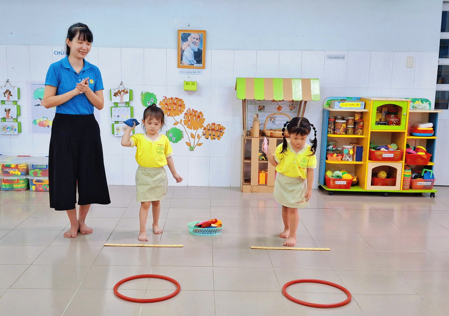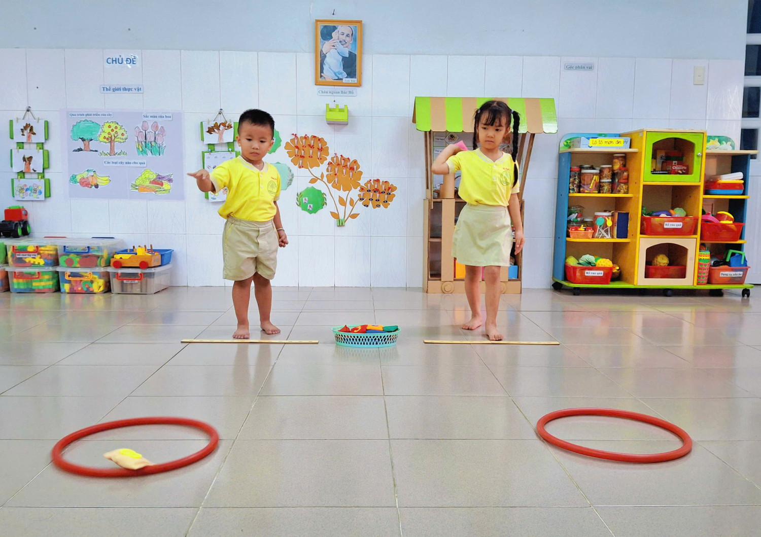 Hôm nay lớp Chồi 3 rộn ràng hẳn lên với giờ thể dục “Ném trúng đích” đó ba mẹ ơi! 😄✨