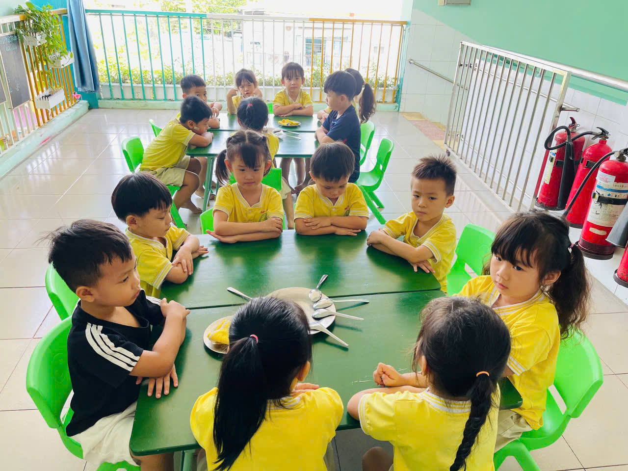 🥗🍱 Thức ăn được mang xuống lớp có nắp đậy kín, giữ cho đồ ăn luôn sạch sẽ và thơm ngon. Khi đến lượt lấy thức ăn, các bé biết xếp hàng ngay ngắn, không chen lấn, không đùa nghịch, chờ đến lượt mình.
