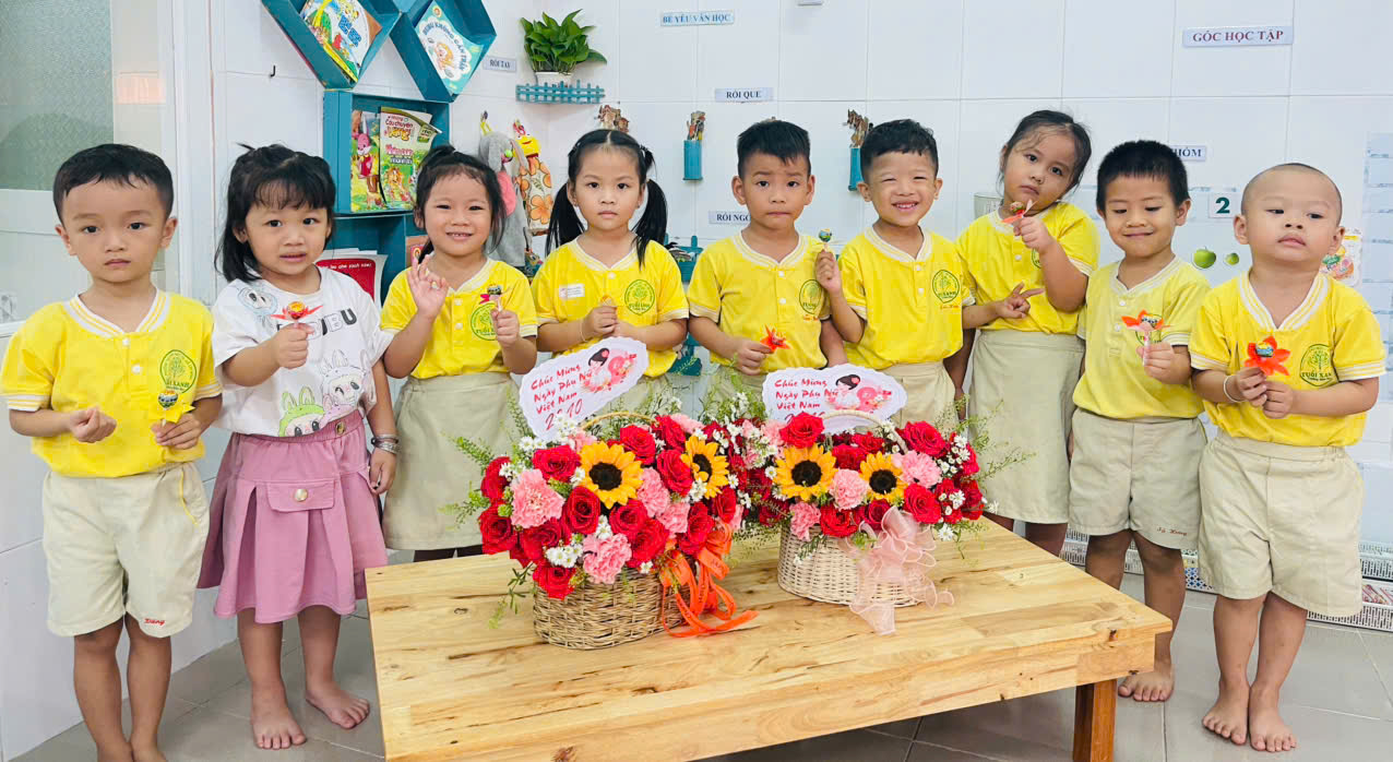 Qua hoạt động này, các bé không chỉ được rèn luyện sự khéo léo, sáng tạo mà còn học cách biết yêu thương, trân trọng và bày tỏ tình cảm với những người phụ nữ thân yêu của mình.